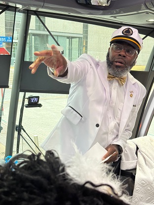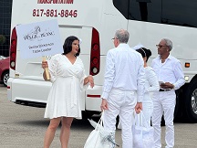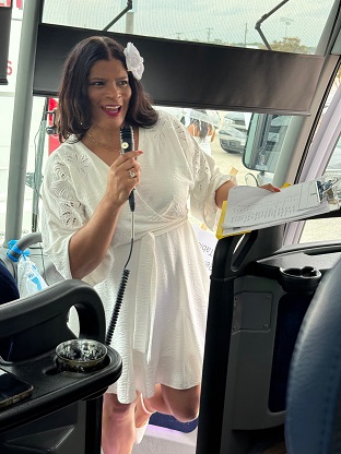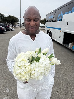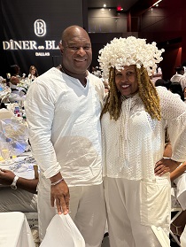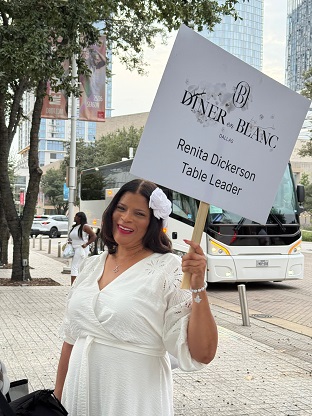 Le Dîner en Blanc explicitly states rain or shine. Thunderstorms in Dallas didn’t stop hundreds from getting dressed up in all-white for Blooming Elegance, the 2025 theme for the Oct. 24, 2025 event that transported persons by bus to a secret location where tables were individually set and dinner was served amongst strangers and friends.