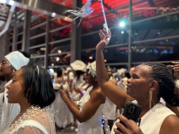 Attendees dressed in white weather the storm for annual, exclusive event
