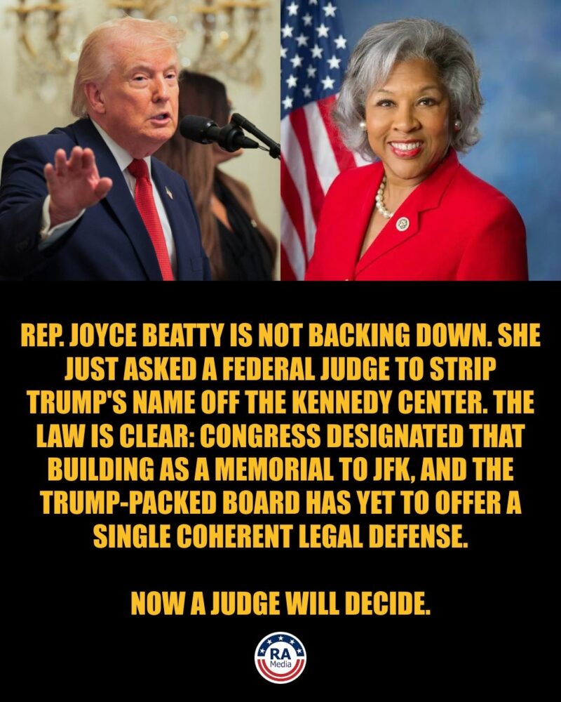 Rep. Joyce Beatty (D-Ohio) has taken the fight over the Kennedy Center to federal court, asking a judge to block the renaming of one of America’s most iconic cultural institutions after Donald Trump.