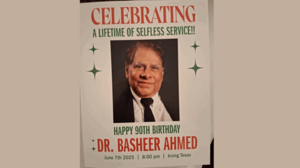 News Happy 90th Birthday Celebration for Dr. Basheer Ahmed Happy 90th Birthday Celebration for Dr. Basheer Ahmed at the Wyndham Airport, Irving TX. Sponsored by the Muslim Community Center for Human Services…http://xn--ww-9ua.mcc-hs.org/ Garland JournalJune 8, 2025