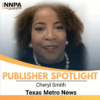News Breaking News: Cheryl Smith, Publisher of Texas Metro News, was elected as Treasurer of the NNPA Cheryl Smith, Publisher/Editor of Texas Metro News, was elected as Treasurer of the National Newspaper Publishers Association (NNPA). Cheryl is also a Board Member... Garland JournalJune 28, 2025